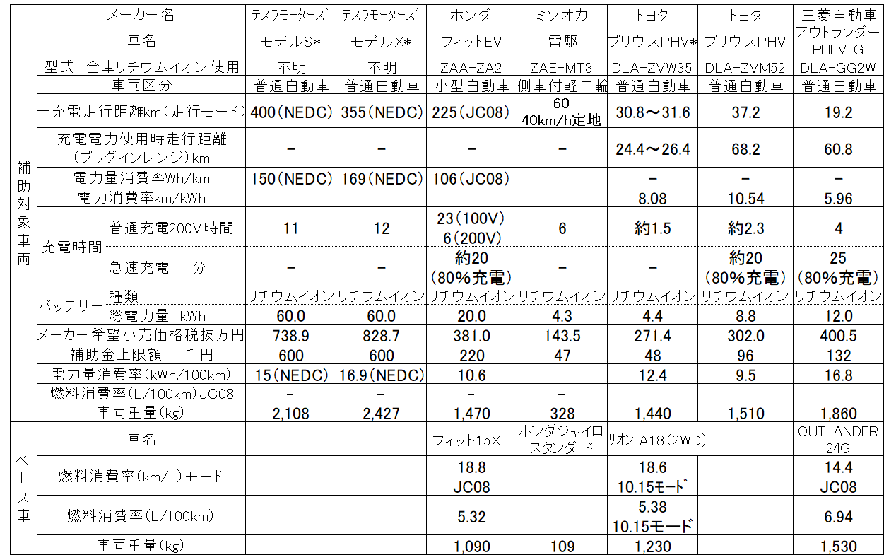 日本で販売中の主なEVとその特徴日本で2017年3月現在で販売中の主なEVとその特徴を次世代自動車振興