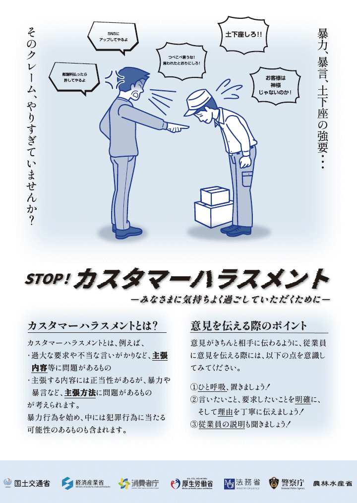 カスタマーハラスメントとは、顧客などからのクレーム・要求・言動のうち