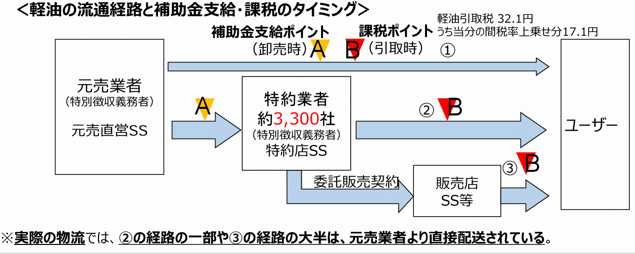 現行の補助金と元売からり蔵出し税である暫定税率は「元売業者」が