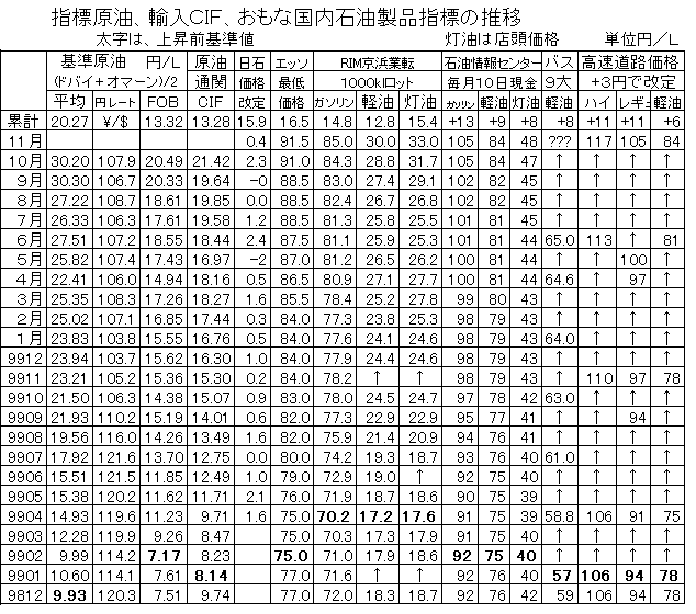 下表参照。また日石三菱の公表値は建値的な要素が強いので変化幅を記載しましたが、累計で