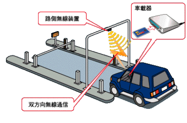 ETCとは、ETC Electronic Toll Collection Systemの略で、通常「ノンストップ自動料金支払いシステム」といわれています。有料道路における料金所渋滞の解消、キャッシュレス化による利便性の向上、管理コストの節減等を図るため、有料道路の料金所で一旦停止することなく無線通信を用いて自動的に料金の支払いを行うシステムで、海外では既に実用化されており、日本では、2000年4月より首都圏を中心に試行運用を始め2001年3月からサービスを開始しました。