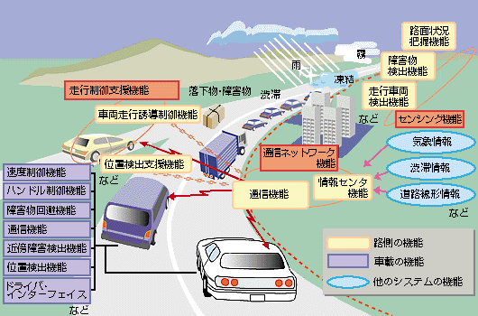 これを一言でいえば、最先端の情報通信技術などを用いて、人と道路と車両とを